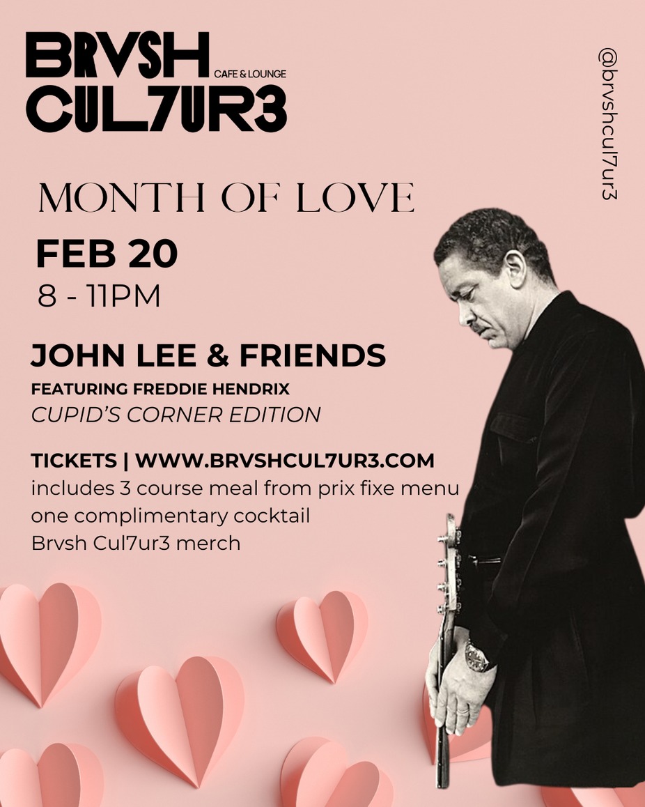 Feel the love this February at Brvsh Cul7ur3! Join us Feb 20, 8–11 PM for our “Month Of Love” series:CUPID's CORNER EDITION with John Lee.